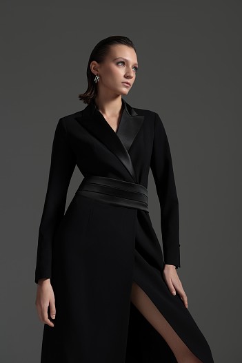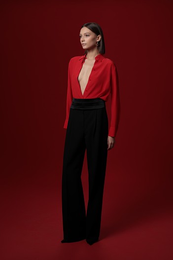 Прекрасно украсит праздничную ночь шелковый костюм из корсета и юбки с разрезом, расшитый вручную 162 кристаллами Swarovski, которые создают невероятный перелив и игру блеска на свету.
