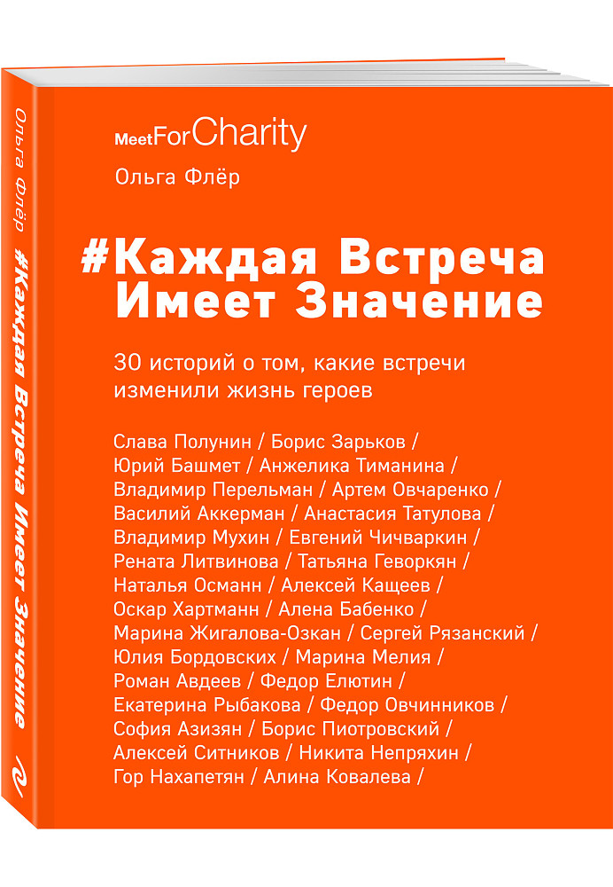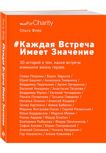 Книга «Каждая встреча имеет значение» откликнется всем, кто ищет вдохновения, мечтает о жизненных переменах и успехе. В ее основу легли истории героев Meet For Charity, в рамках которого было проведено уже более 3000 встреч и собрано более 118 млн рублей для 100 благотворительных фондов. Тридцать выдающихся людей открыли свои сердца и поделились с Ольгой Флер самыми важными историями — о любви, дружбе, бизнес-партнерствах и встречах, изменивших жизнь.