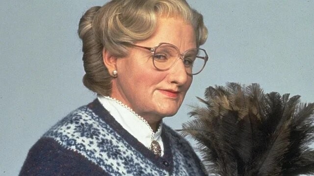 Элегантный Робин Уильямс в комедийной роли, за которой скрывается совсем не комедийный подтекст. Актер Дэниел Хиллард поссорился и развелся с женой. По решению суда дети остались с ней, а он может встречаться с ними только раз в неделю. Но тут жена размещает объявление о том, что семье нужна домработница. Вскоре на пороге дома появляется леди с аккуратной укладкой и шотландским акцентом. Конечно же, это переодетый Дэниел. Теперь он может проводить с детьми практически все время, но вместе с тем ему нужно сохранять инкогнито. А это очень непросто, учитывая, что ему приходится наблюдать за отношениями бывшей жены и ее нового ухажера.