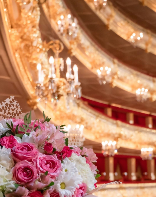 Цветы проносить в зрительный зал не разрешается. В ГАБТ подарить букет любимому артисту поможет капельдинер. Перед спектаклем ему нужно передать цветы, и их от вашего имени отправят за кулисы.