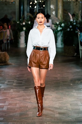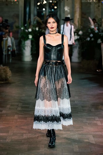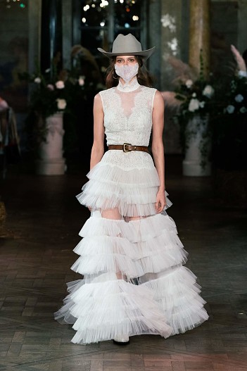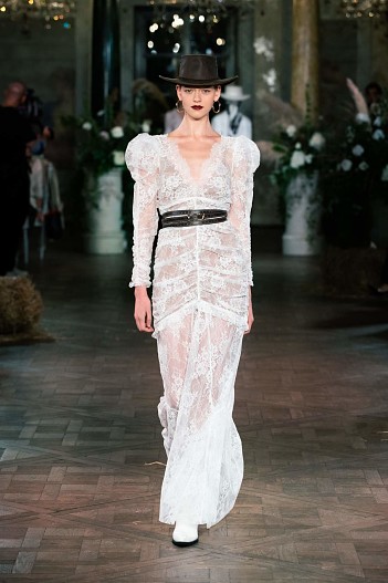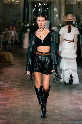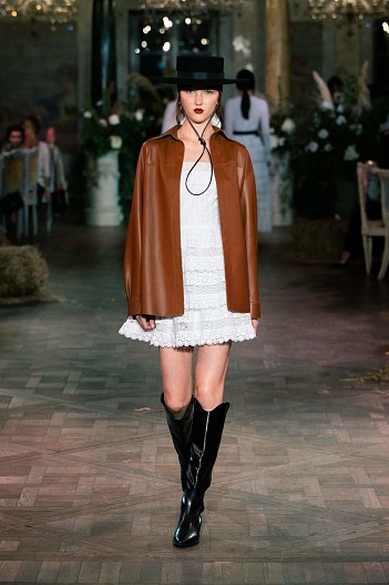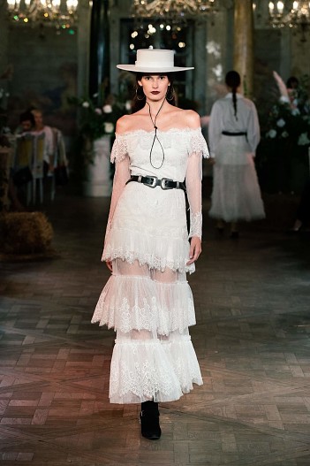 Коллекция Cruise 2021 задумана как гардероб для путешествий, где все предметы сочетаются между собой. Основой стали белоснежные платья из кружева шантильи и шитья, в которых легко можно представить себя на морском побережье или у горного озера, ажурные сарафаны, лаконичные белые рубашки и корсеты из светлого денима. А кожаные шорты, куртки с бахромой в сочетании с фетровыми «ковбойскими» шляпами, широкими ремнями и сапогами-казаками превращают романтичную героиню коллекции в героиню вестерна.
