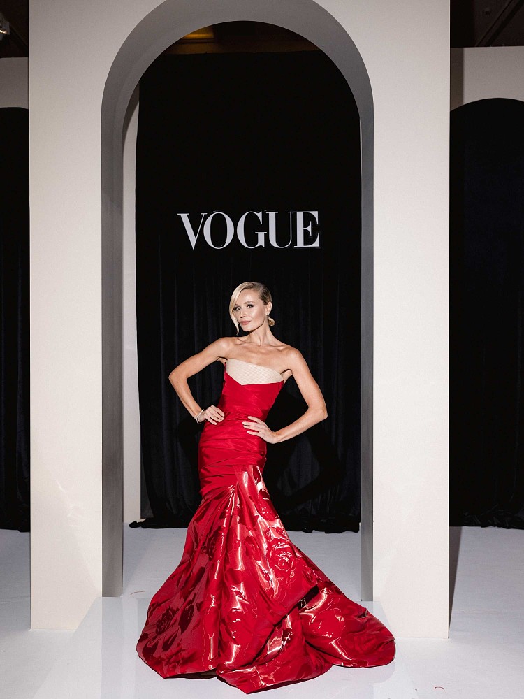 Специально для вечера двадцать российских дизайнеров сшили наряды для своих муз, руководствуясь дресс-кодом: вечерний, красный. На гала-ужине команда Vogue Россия объявила об учреждении ежегодного конкурса для молодых дизайнеров «Vogue Старт».