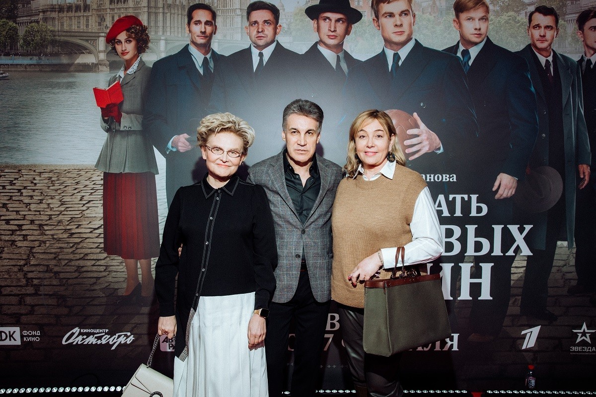 Лариса Долина, Роман Курцын, Юлия Савичева на премьере фильма «Одиннадцать молчаливых мужчин»