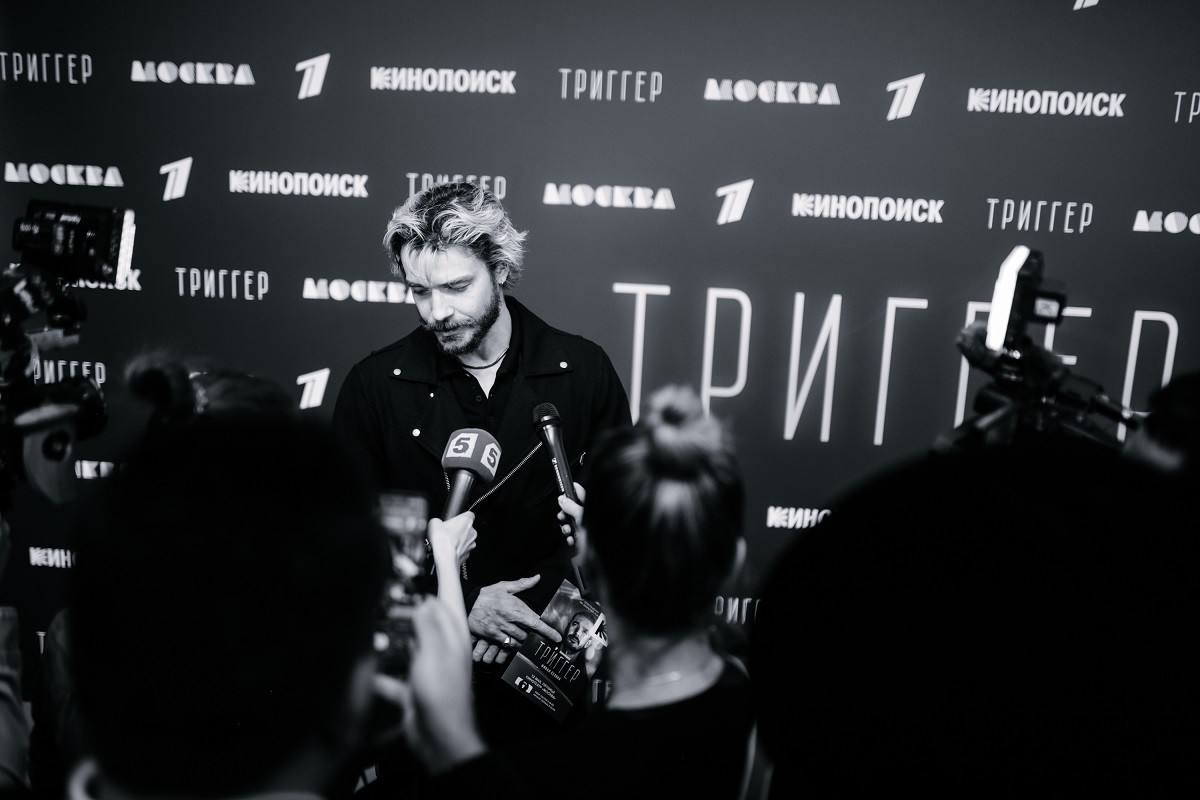 «Я благодарен продюсеру Саше Ремизовой за то, что у нее возникла идея «Триггера», что она ее продвигала и отстояла мою кандидатуру на главную роль. Я благодарен режиссерской группе. Для меня шестнадцатисерийный формат был очень страшной штукой до того момента, когда я начал с ним работать. И мне очень повезло с партнерами по съемочной площадке: я счастлив учиться у них и находиться с ними в одном кадре. «Триггер», как мы сегодня узнали, не заканчивается. Хотя мне кажется, он и так уже стал частью нашей жизни», — рассказал актер Максим Матвеев.