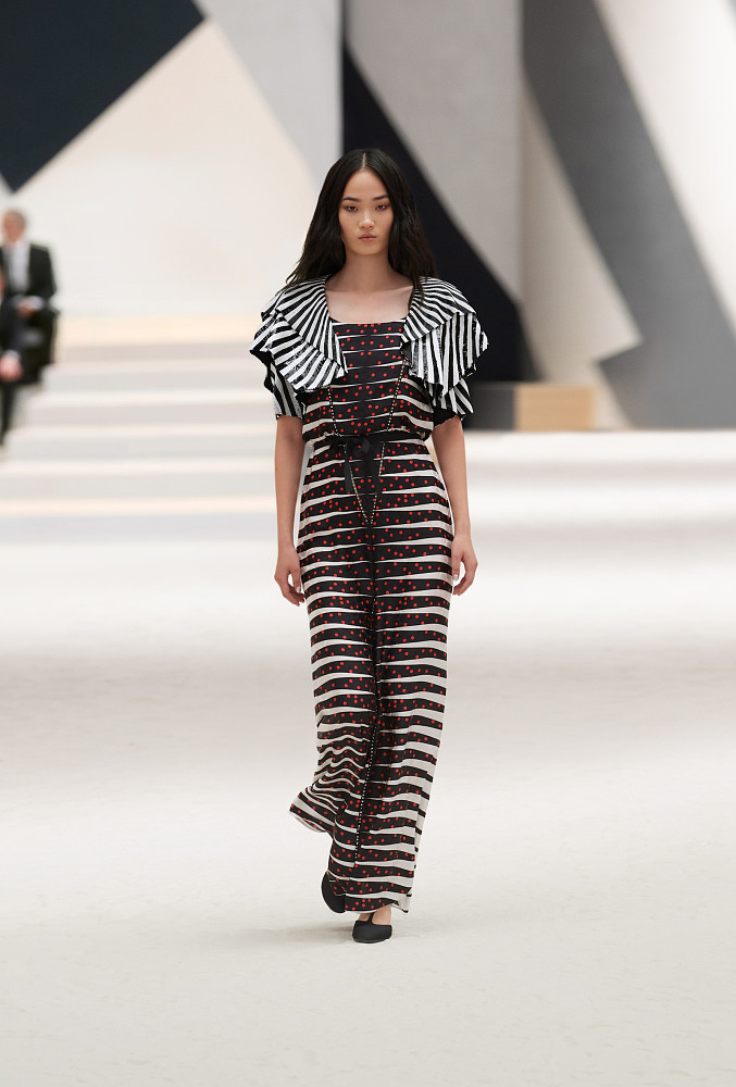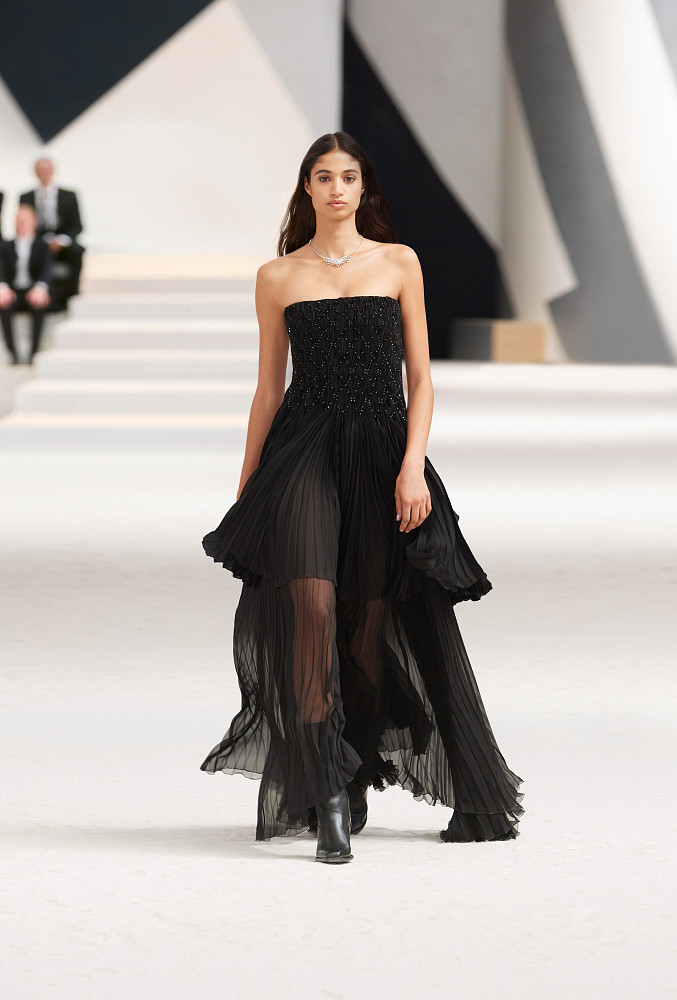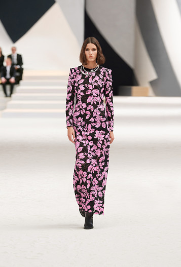 «Я представляла себе показ высокой моды осень-зима 2022/23 в преемственности с предыдущим показом, оставляя простор для экспериментов, — признаётся креативный директор Chanel Виржини Виар. — В новой коллекции есть костюмы, длинные платья, какими их представляла себе мадемуазель Шанель в 1930-х годах: облегающие фигуру, плиссированные модели, инкрустированное цветное кружево... Палитра — от ярко-зеленого, хаки, бежевого, розового до большого количества черного и серебристого».