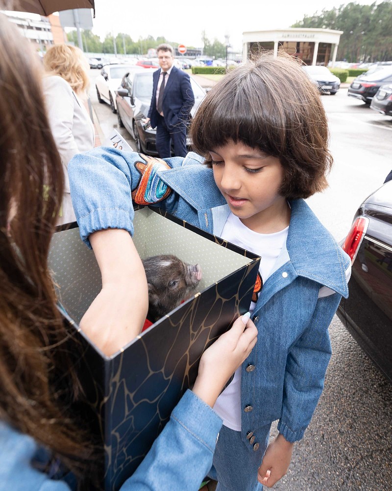 Оказывается, муза Мартина — его сестра Алла-Виктория. Именно ее рисунки вдохновили мальчика на творчество. Также гости показа увидели коллекцию одежды в стиле casual по мотивам рисунков дочери Филиппа Киркорова. А открытие показа началось с картины, нарисованной Аллой-Викторией. Эффектное появление первой модели через полотно стало символичным первым шагом в мир моды через искусство.