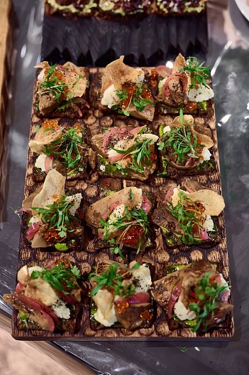 И действительно: сморреброды с тартаром из оленя и кремом из зеленого лука, икра хариуса с айоли из огуречной травы или сыровяленные як, марал и лось с кремом из свеклы и уксуса никого не оставили равнодушными, как и музыкальное сопровождение вечера в лице «музыкальной машины Края» — диджея Эльдара Мухомедзянова.