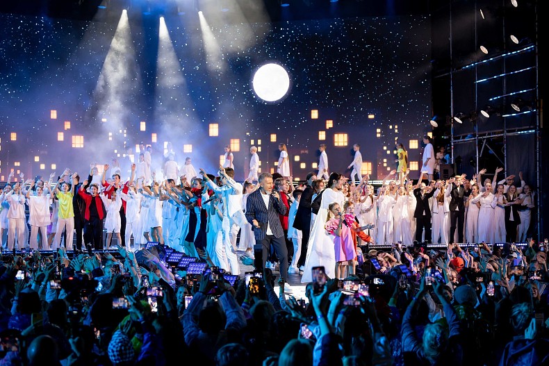 Несмотря на ливень и штормовое предупреждение, форум завершился большим гала-концертом, где участники-призеры конкурсов получили возможность спеть на одной сцене с мэтрами российской эстрады.