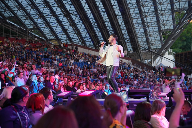Концерт «Звезды Русского Радио» прошел на  главной концертной площадке международного фестиваля искусств «Славянский базар» – в летнем амфитеатре. Мероприятие началось в 1.30 ночи. Но даже несмотря на позднее время и температуру на улице всего +8 градусов, зал на 6200 мест был переполнен.