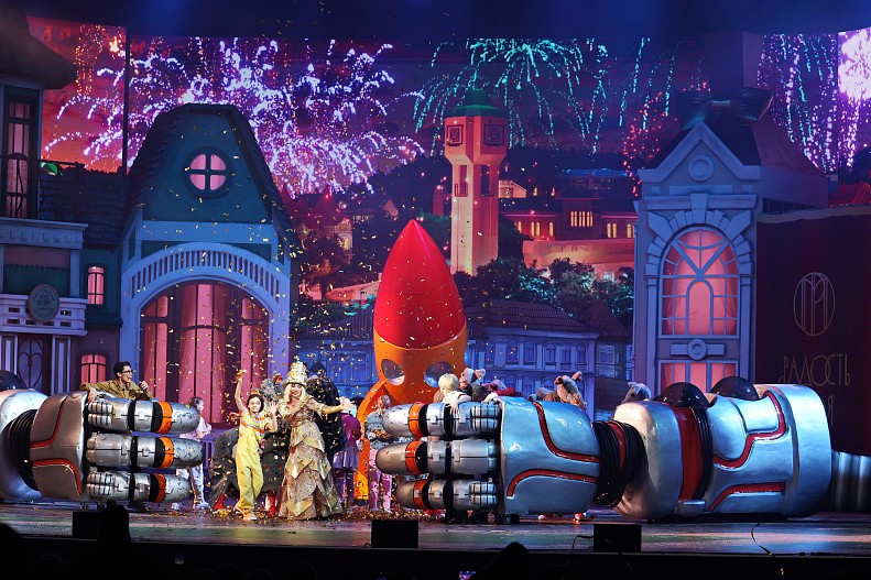 Создатели переполох-шоу задействовали в постановке и вертолет, на котором прилетит Гена спасать Чебурашку, и ракету, на которой в полюбившемся фильме летал главный герой.