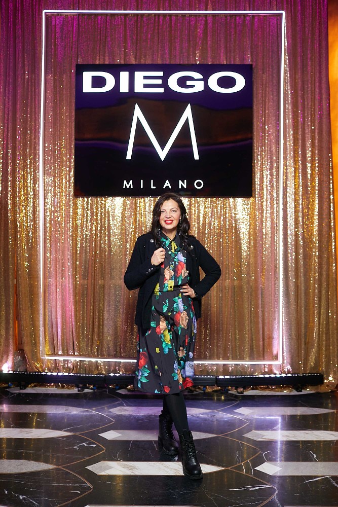 Лично поприветствовать гостей приехала Мануэла Бортоламеолли, владелица и дизайнер бренда. Марка DIEGO M — лидер по производству итальянской верхней одежды в этом году отмечает 20-летний юбилей, из которых вот уже 15 лет вдохновенно согревает русских женщин зимой. Вот и новая зимняя коллекция посвящена именно женщинам — таким талантливым, многогранным и всегда актуальным. Входную группу гранд-лобби украшала Рождественская елка, что моментально задавало гостям праздничное настроение. За музыкальную атмосферу отвечали Антон Лаврентьев с Gipsy band и Гриша Super. Модные инфлюенсеры, селебрити, стилисты, редакторы медиа и другие представители модной индустрии «сверкали» на танцполе в тон новогодним шарам.