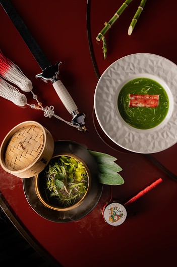 Накануне в рамках гастрофестиваля прошел ужин в ресторане MUME, на котором шеф-повар Джэки Ву, обладатель звезды Мишлен, представил гостям сет, посвященный фильму–участнику внеконкурсной программы 57- го Каннского кинофестиваля – «Дому летающих кинжалов». Проникнуться атмосферой эпохи Тан на 90-м этаже башни «Федерация» и вспомнить одну из самых эффектных сцен, когда актриса Чжан Цзыи исполняет завораживающий «Танец подражания», поставленный знаменитым хореографом Тони Чином, гостям помогли звуки небольших барабанов, предваряющие подачу сета – в точности как удары фасолин в фильме.