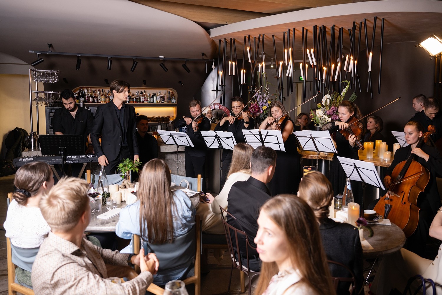 Особой изюминкой вечера стало неожиданное выступление музыкантов шоу Luminary. Переодевшись в официантов и затерявшись среди гостей, они неожиданно начали исполнять известные композиции, добавив еще больше волшебства и музыкального настроения в этот незабываемый вечер.