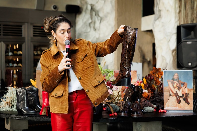 Инфлюенсеры добавляли в свои вишлисты практичную базу и примеряли броские модели. Гостьям особенно приглянулись леопардовые лодочки из капсулы Moa, силуэтные ботильоны акцентного алого цвета из коллекции Camellia и казаки из гладкой кожи с питоновым паттерном.