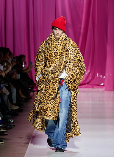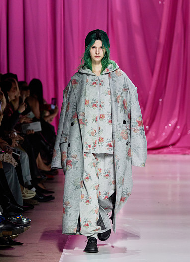 Рогов устроил настоящий рок-н-ролл на подиуме: много лака, леопардовый принт и гранжевые элементы. В стилизации коллекции прослеживалась одна из любимых фишек Александра — сочетание несочетаемого: он соединил в образах полярные элементы: пижамные штаны с пальто оверсайз, базовую толстовку с юбкой в кристаллах, платье в стразах с курткой рабочего.