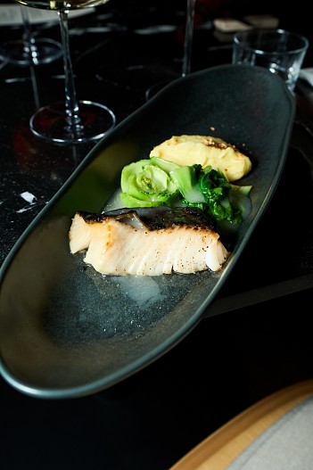 • Соленое: угольная рыба с бульоном даши, картофельным кремом и ферментированной пак-чой — гармония японской гастрономии с современными европейскими акцентами.