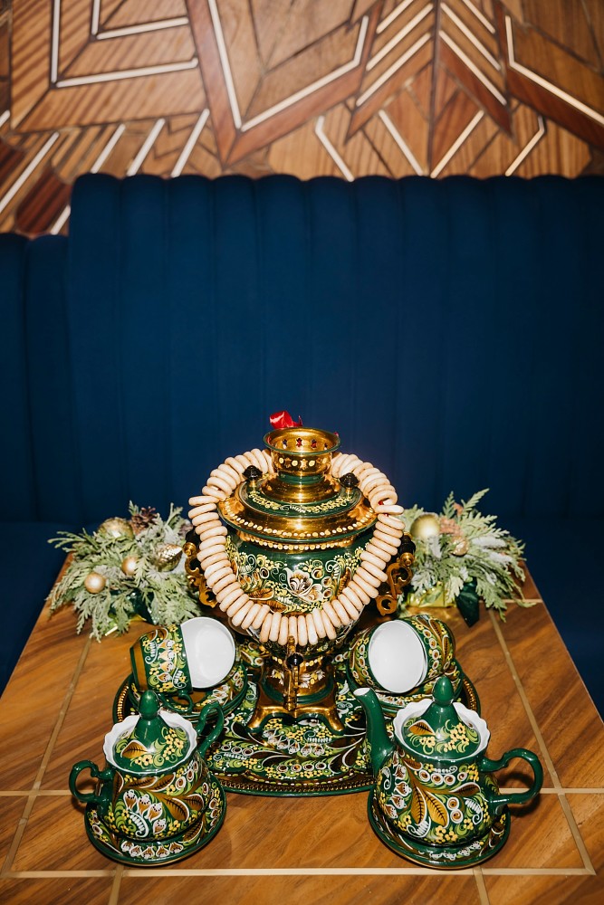 Праздничная сервировка, мандарины, пирожные, коллекционные сорта чая — теплая атмосфера располагала к тому, чтобы отбросить суету, обсудить последние новости, кинопремьеры, проекты и поздравить друг друга с наступающим. 2025 — Год Змеи, и одним из подарков гостям стали разноцветные змейки-головоломки, из которых можно сложить множество разных фигур.