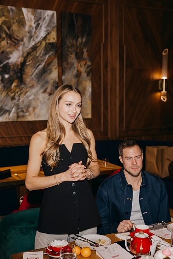 В чаепитии приняли участие олимпийские чемпионы по фигурному катанию, друзья бренда ZASPORT и амбассадоры зимней коллекции We are one Виктория Синицина и Никита Кацалапов. К ним присоединились актриса Ангелина Стречина, телеведущая Юлия Барановская, стилист Елена Дудина, актер Кирилл Чернышенко, фигуристка Анна Погорилая и другие гости.