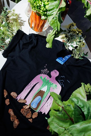 «Готовя это мероприятие, мы старались придерживаться общей концепции эко-дропа, разработанного совместно с VK с заботой о планете, и сделать акцент на функциональности, экологичности и актуальном дизайне. Футболки и платки украшены уникальным артом, который символизирует дерево жизни, растущее внутри каждого из нас. Ведь шелест природы, как и наше естество, можно услышать внутри себя, если внимательнее прислушаться. Новая лимитированная капсула стала настоящим графическим манифестом. Надеемся, она напомнит всем нам о необходимости бережного отношения к окружающей среде», — рассказала об эко-дропе креативный директор ZNWR Наста Шастак.