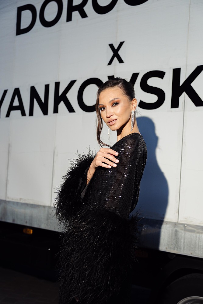 Площадка была выбрана неслучайно — Outlet Village Белая Дача. В самом центре ТЦ расположились три грузовых брендированных автомобиля. В одном из них гости могли познакомиться с новыми моделями из дропа и примерить на себе каждое изделие. В другом расположились еда, напитки и питьевая вода Cristalle. В третьем находилась фотозона, украшенная снимками из кампейна DOROGINA & YANKOVSKAYA. За музыкальное сопровождение отвечала исполнительница Алиса Кокова.