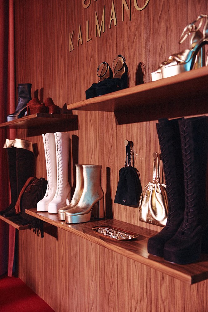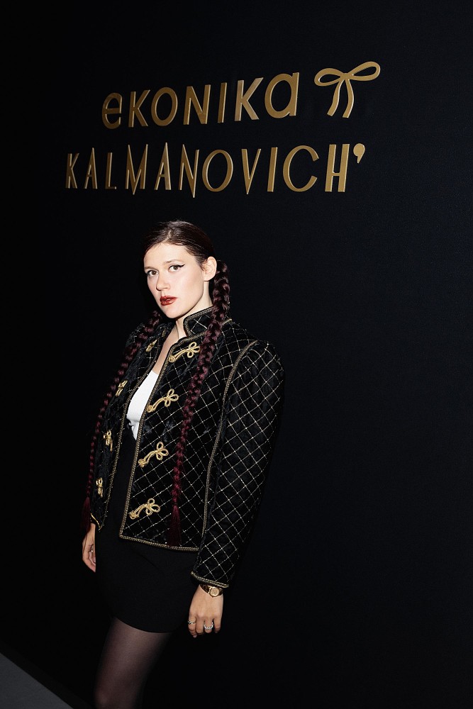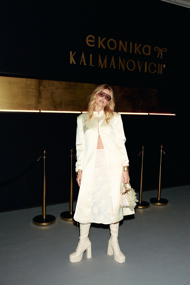 Кульминацией вечера стало открытие комнаты хозяйки, где гостям была представлена совместная коллекция EKONIKA x KALMANOVICH, центральное место в которой заняли знаковые силуэты эпохи: сапоги с акцентной шнуровкой, ботфорты на низком ходу с широким голенищем, ботильоны на устойчивом каблуке, сабо и металлизированные босоножки. Главным лейтмотивом капсулы стала высокая танкетка и акцент на устойчивость: прием, объединяющий женственность, уверенность и комфорт.