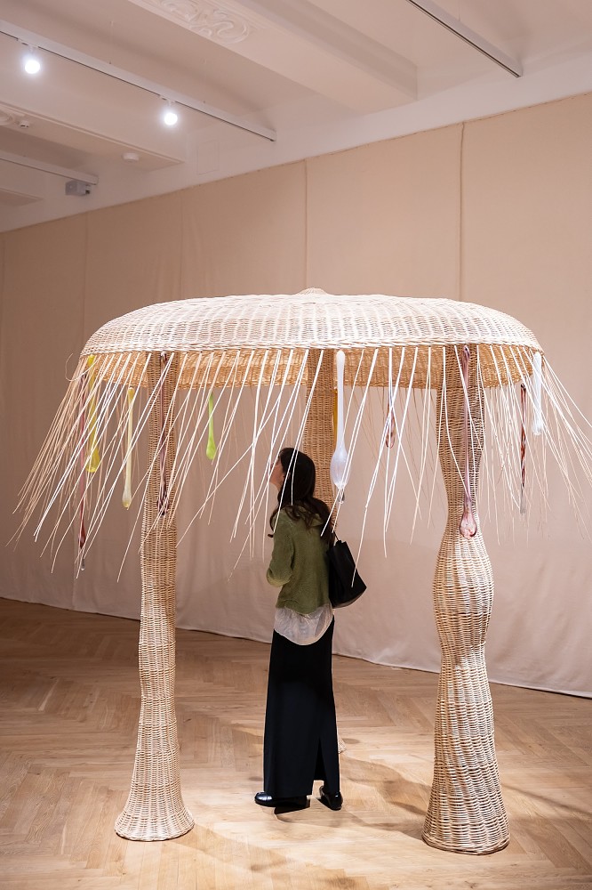 Наталья Ортега превращает характеристики человеческой личности в три плетеные инсталляции со стеклянными «слезами» — «Перфекционист», «Эксцентрик» и «Романтик». «Они были выбраны в качестве основных скульптур, потому что воплощают три разных эмоциональных архетипа», — объясняет Ортега. Эти образы можно воспринимать как психологические маски, которые человек выбирает и носит, словно одежду, отражающую его настроение. «Проект “Persona” — предложение задуматься о том, что мы выбираем показывать, что скрываем и как материалы, фактуры и формы могут отражать эти эмоции», — продолжает Наталья.