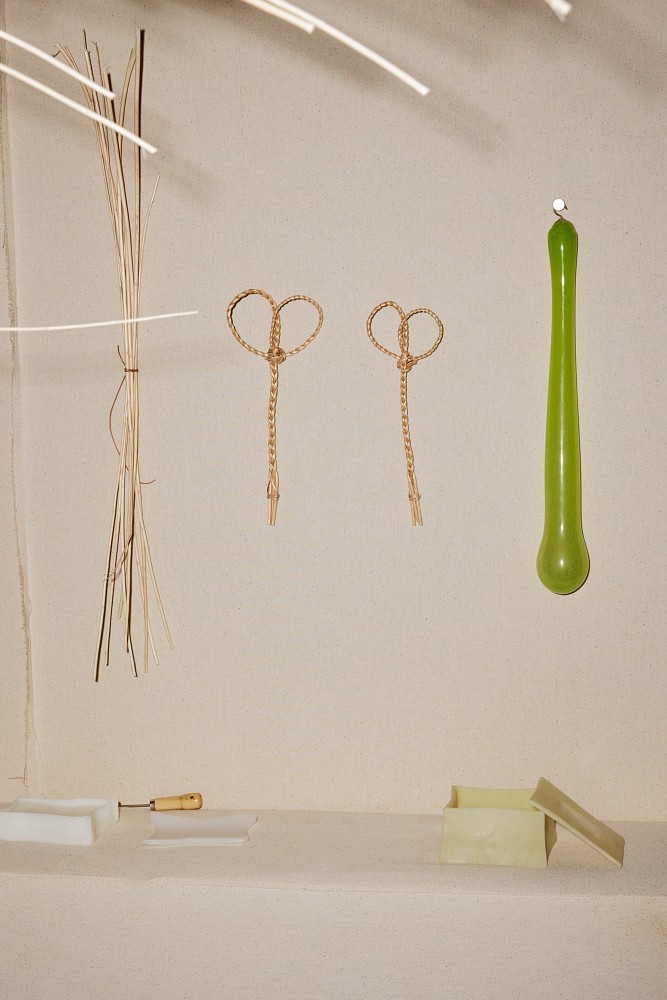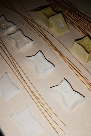 Также здесь появились ниши со свечами ручной работы, созданные специально к выставке мастерами Worn Studio. Форма и цвет каждого изделия уникальны. Приобрести их можно на ярмарке blazar.