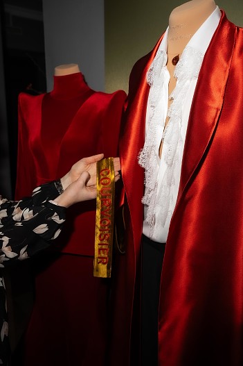 ● жакет из красного бархата приталенного силуэта с острыми плечами — как стейтмент силы и одновременно хрупкости — форма которого созвучна десерту «Силуэт», созданного Дмитрием Логиновым совместно с командой ресторана Savva;