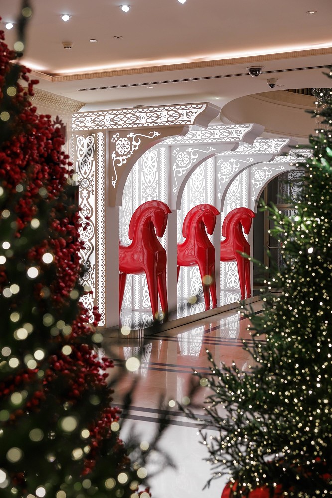 И немного о dolce vita: самым сладким моментом праздника стала презентация линейки десертов ручной работы от Игоря Мельникова — шеф-кондитера Four Seasons Hotel Moscow и мастера шоколадных скульптур. Его авторская коллекция тоже вдохновлена годом Красной Огненной Лошади и русскими сказками и вторит декору: лошадок, например, «отливали» по тем же 3D-формам, что и игрушки! Матрешка, петушки, рождественское полено, новогодние часы: для вас сладости упакуют в фирменные коробки — и стильный презент для коллег готов! Кроме того, отель представил специальные предложения: новогодняя ночь в ресторане Quadrum под кодовым названием «Сказочный Русский Новый Год», в баре «Московский» с программой «Пиковая Дама» и в ресторане Silk Lounge в стиле сказки о Коньке-Горбунке, Рождественский ужин в Quadrum с трюфельным сомелье и Московское чаепитие.