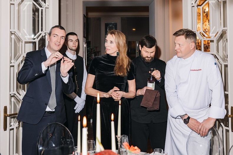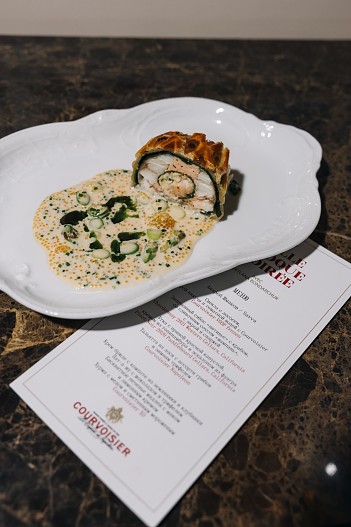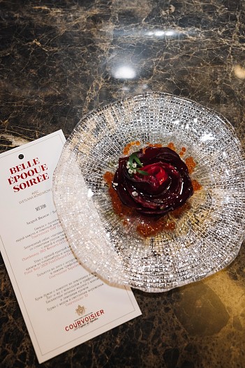 За гастрономическую составляющую вечера отвечал бренд-шеф ресторана Savva и амбассадор Courvoisier Андрей Шмаков. Меню, в котором французская классика встретилась с традиционными русскими мотивами, было вдохновлено осенней поездкой в Жарнак, на родину Коньячного Дома. Гости попробовали свеклу с лососем и томатной водой с коньяком, запеченного сибаса «питивье» с крабом и соусом «шампань», утку с пряной красной капустой, кремом из топинамбура и эскалопом из фуа-гра, а также тальятту из лося с зимним трюфелем — блюда, в которых важны настроение и сезонность. Специально разработанные авторские коктейли были созвучны тематике ужина и создали особое настроение, когда не хочется следить за стрелками часов.