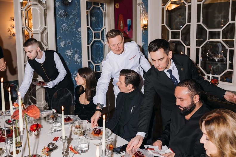 3 декабря Светлана Бондарчук устроила предновогодний ужин от бренд-шефа ресторана Savva Андрея Шмакова в эстетике французского салона Belle Époque с приглушенным светом свечей, негромкими разговорами, изысканными блюдами и напитками, а также музыкально-театральными сюрпризами.