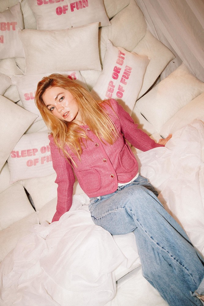 С первых минут гости погружались в атмосферу эстетичного «утреннего рейва»: центральная зона была оформлена в виде мягкой стены из подушек и большой кровати, на которой можно было сделать эффектные кадры — серебристые, розовые и белые акценты задавали настроение. В пространстве также разместилась и объемная инсталляция из огромной подушечки жевательной резинки, и множества футляров для жвачки — символ праздника и новый объект желания всех и каждого.