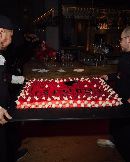 За гастрономическую часть вечера отвечал Владимир Мухин. Для открытия он подготовил авторские подачи, представленные каждому гостю и отражающие характер и философию «Горыныча».