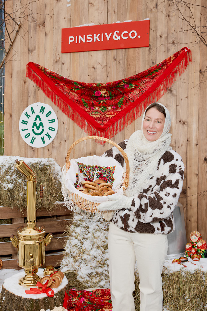 Отдельного слова заслуживает праздничный стол. Блины — воздушные, румяные, ажурные — готовили на молоке «Простоквашино». Их подавали с икрой, мясом, нутеллой, творогом и сметаной. Дополняли меню мини-бургеры, пончики с крабом, пирожки, хот-доги и кукуруза — сытные зимние блюда, исполненные командой Pinskiy & Co с ресторанной точностью.