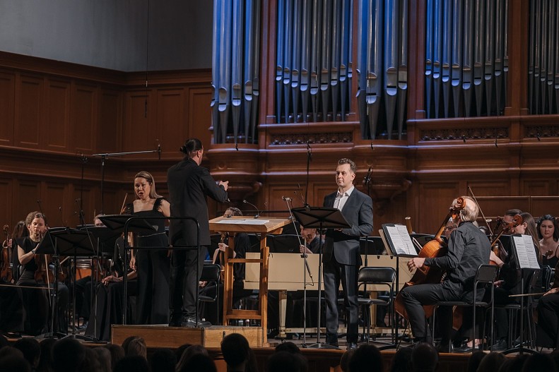 Программу концерта составили произведения Леонида Десятникова (музыка к балету Opera) и Густава Малера (Симфония №4), вокальные партии исполнили звезда мировой оперной сцены Надежда Павлова, а также солисты театра Яна Дьякова, Диляра Идрисова и Сергей Годин. На сцене консерватории выступил оркестр La Voce Strumentale под управлением одного из лучших современных дирижеров России Дмитрия Синьковского.