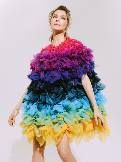 (Смеется.) Ты знаешь, интервью — это всегда момент публичный, и я не готова рассказывать всё до конца. Любые откровения о личном на широкую аудиторию для меня всегда сомнительны. Мне не нравится в соцсетях или в интервью говорить, например, как мне тяжело, жаловаться, сколько часов я сплю и сплю ли вообще. Скорее мне хочется поделиться зарядом радости и позитива, а не озабоченностью. Про «героическую» часть своей жизни я больше говорю шутя, потому что у меня уже прошла стадия, когда человек ищет пятый угол, — я уже вне этой меры, этого предела своих возможностей. (Смеется.) Но так как это наша с тобой четвертая обложка, окей, давай начистоту: да, я не сплю! (Смеется.) Такой опции в моей жизни нет. Если раньше я могла четко определить границу между днем и ночью, то за последние пять лет материнства она исчезла, появилось ощущение непрерывности. И удивительное дело, не могу отучить себя не хотеть спать. Зараза, спать хочется! Особенно ночью. (Смеется.) Опять же, это разговор для определенного круга. Такого же круга мам, которые видят родительство именно так, как его почувствовала я...