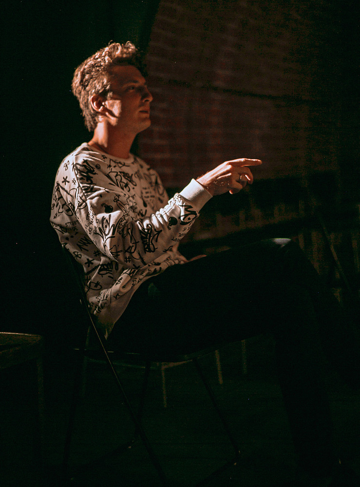 Антон Лобан: Ребята многое уже сказали про текст, не хочу повторяться. Поэтому скажу, что для меня главным было то, что мы репетировали его с однокурсниками. Приятно репетировать с приятными людьми, с приятным режиссером в приятной обстановке и с отличным материалом. И еще момент амбивалентности, двойственности, исследование сущности этого переката от одного к другому и обратно, некие качели — вот это было интересно.