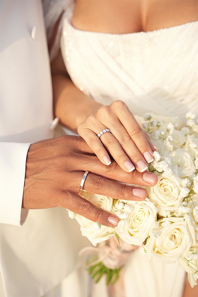 А.: Еще я хотела бы сказать пару слов про наряды. Мне помогла моя подруга Яна Расковалова. Мы встретились на празднике у Филиппа Киркорова, я поделилась с ней, что нахожусь в поиске свадебного платья, и она предложила создать наши свадебные наряды. И обрати внимание на вот это кольцо. Женщине очень важно в такой момент сиять и быть красивой, и это тоже дело рук Яны! И конечно, хочется сказать огромное спасибо нашей общей подруге Гюнай Мусаевой и ее компании Muse Pass, которая полностью взяла на себя организацию всей этой сказки. Как будто вся Вселенная о нас заботилась. Как Бог помогает? Только через людей. А еще, Вадим, я подумала о тебе. Мы с тобой давно знакомы, не раз общались по душам, и я хотела именно с тобой поделиться нашим счастьем и впервые рассказать, как всё было на самом деле.