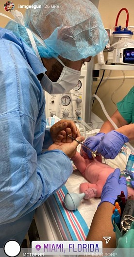 Также Джиган выложил несколько фотографий в сторис. На одном из кадров видно, как он самостоятельно перерезает ребенку пуповину.