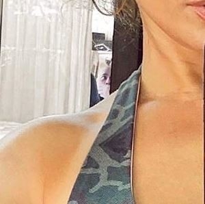 Вероятнее всего, человек, попавший в кадр, - это персональный тренер Дженнифер Лопес, который в этот момент делал приседания в медицинской маске на лице. Это объясняет и его положение, и выражение лица. Сама артистка никак не прокомментировала странную фотографию.