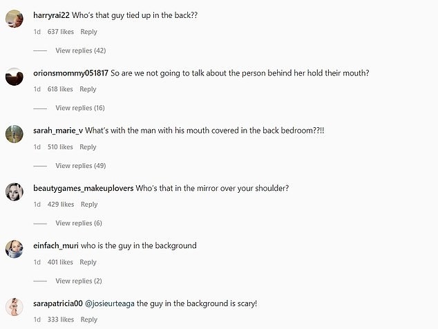 «Почему на заднем плане мужчина с закрытым руками ртом?», - поинтересовался один пользователь. «Кто этот парень и что с ним?», - вторил ему другой. «Тот неизвестный человек вселяет страх», «Выглядит жутко», — подхватили другие подписчики.