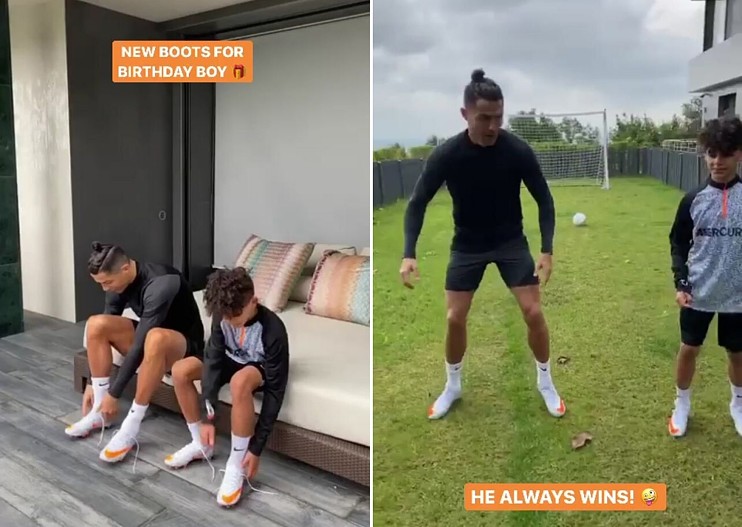 Роналду подарил наследнику новую версию культовых футбольных бутсов Mercurial Safari, которые он представил как раз десять лет назад. Отец и сын опробовали обувь в дружеском поединке, в котором победу одержал Криштиану-младший. «Он всегда выигрывает!» - признался нападающий «Ювентуса».