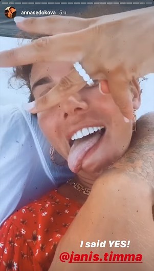 А уже сегодня Анна Седокова сообщила своим подписчикам в инстаграме, что Янис сделал ей предложение и она ответила согласием.