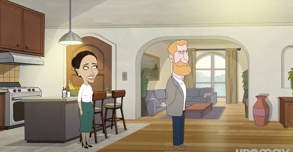 «Это, наверное, самый маленький дворец, в котором я когда-либо был», — говорит мультяшный принц Гарри голосом Орландо Блума. «Ну да, это же квартира», — пытается объяснить Меган Маркл, которую озвучивает Кондола Рашад. «Квартира-дворец, я это знаю. Множество маленьких дворцов в одном большом», — парирует герцог.