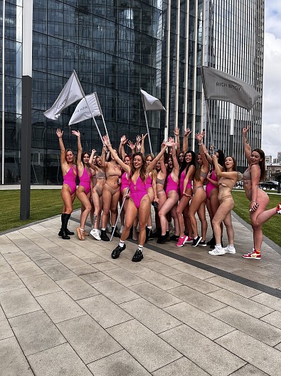 В своей квартире в «Москва Сити» за час девушка собрала 30 подписчиц, одела их в купальники и белье своего бренда Rich.Bitch и отправилась со своей командой на пробежку вокруг ТЦ «Афимолл».