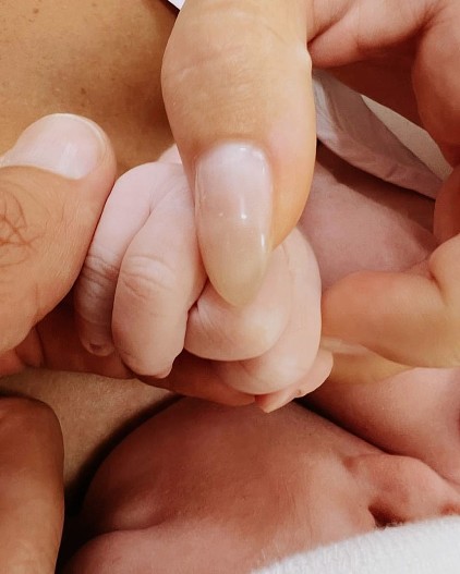 Счастливые родители поделились с поклонниками радостной новостью и показали первую фотографию сына в своих социальных сетях. Малыш родился настоящим богатырем — весом 3,890 кг и ростом 52 см.