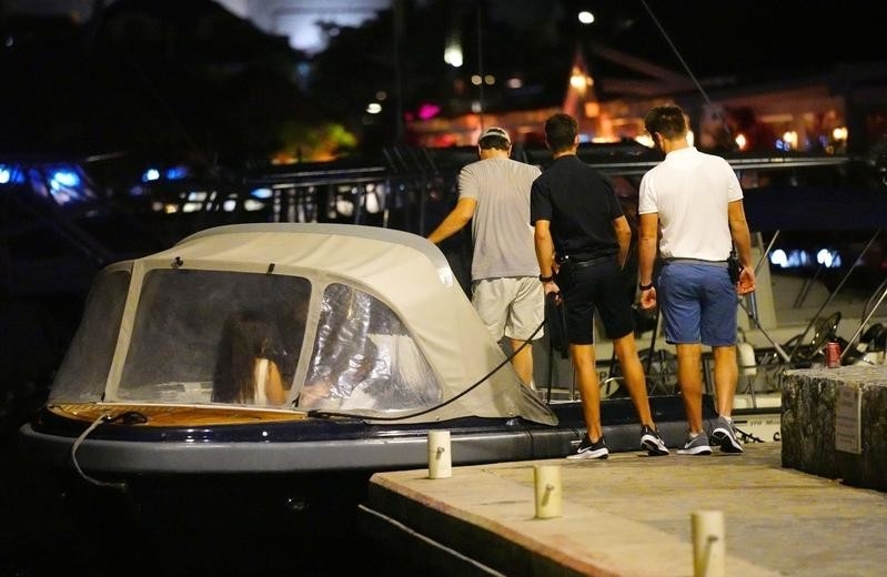 Затем пара направилась на яхту Vava II швейцарского миллиардера Эрнесто Бертарелли стоимостью 150 миллионов долларов. До этого ходили слухи, что актер отдыхает без своей возлюбленной. Однако в минувшую среду папарацци всё же удалось снять пару вместе.