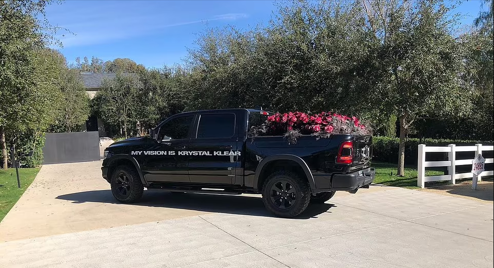 14 февраля Уэст преподнес матери своих четверых детей целый фургон алых роз. На своей странице в инстаграме артист выложил фото черного пикапа, груженного цветами, на котором большими белыми буквами красовалась надпись: «Я кристально четко вижу цель».