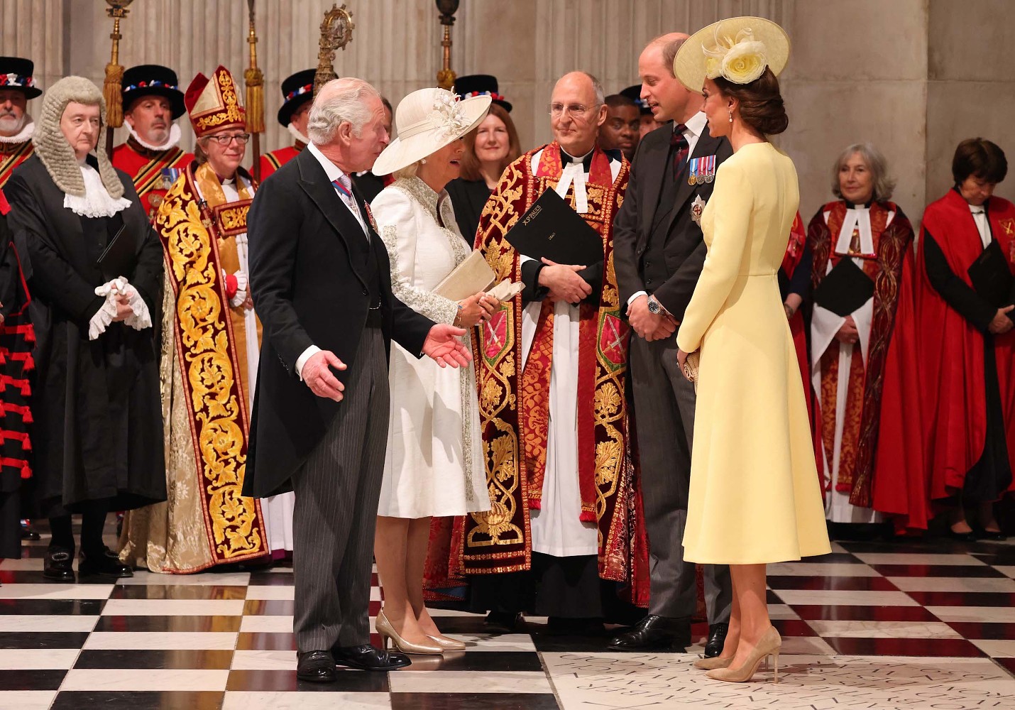 Кейт Миддлтон и принц Уильям поообщались с принцем Чарльзом и Камиллой внутри собора, а к принцу Гарри и Меган Маркл даже не подошли. Те, в свою очередь, сидели рядом с принцессой Евгенией и ее мужем, Джеком Бруксбэнком. Также Сассекским удалось перекинуться несколькими фразами с дочерью и сыном принцессы Анны — Зарой Тиндалл и Питером Филлипсом.