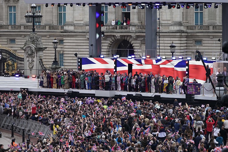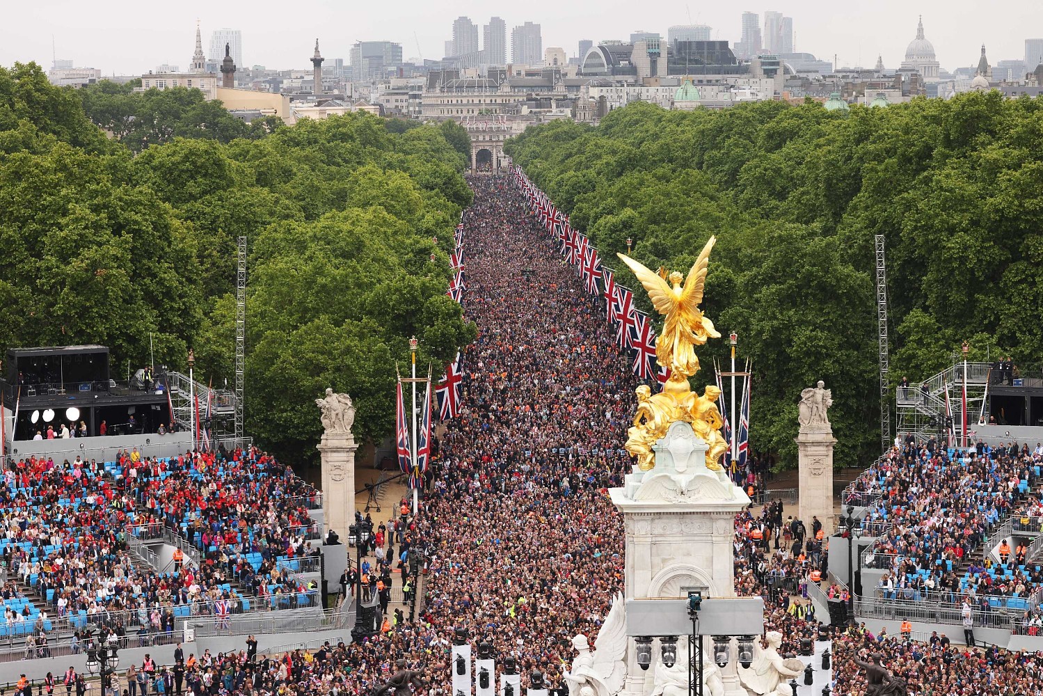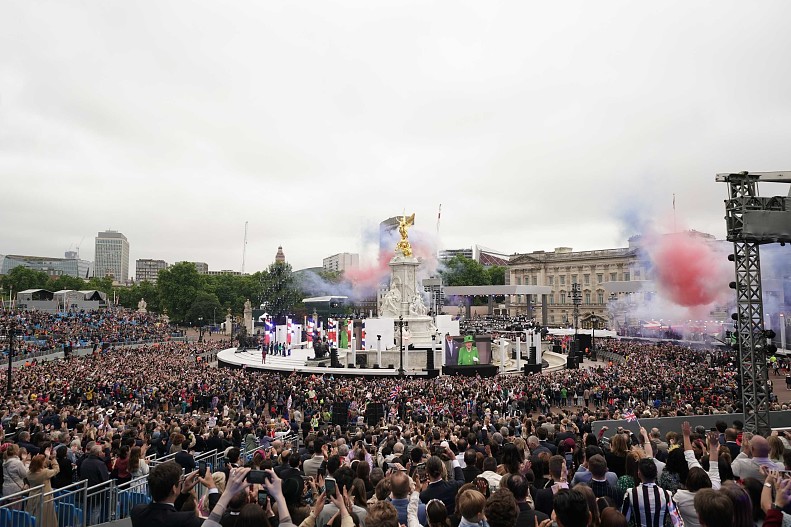 Огромная толпа перед дворцом спела в унисон «Боже, храни королеву», завершив празднование юбилея.